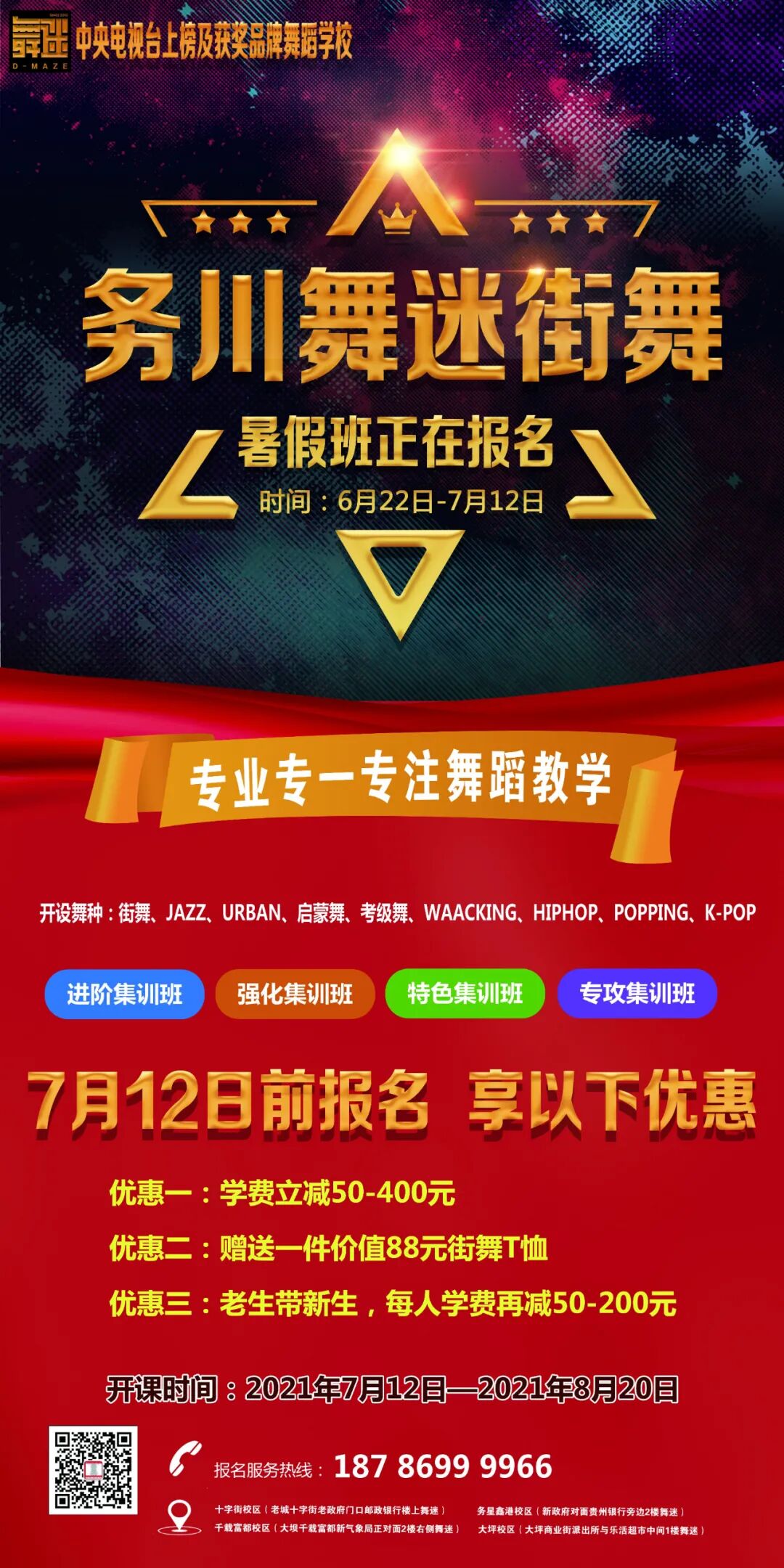 务川舞迷舞蹈学校 暑假集训班重磅来袭