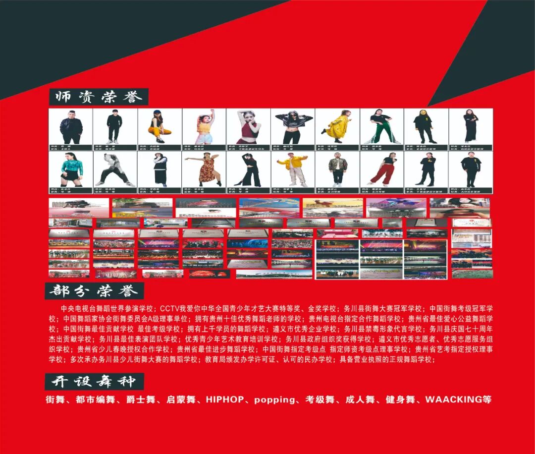 务川县舞迷舞蹈学校(中央电视台上榜及获奖品牌舞蹈学校),创于2010年8月8日,资质齐全,是一家专一专业专注做舞蹈培训的非营利性民办学校,每期学员上千人,培育舞者数万人次,是CCTV上榜及获奖品牌舞蹈学校,务川县街舞大赛冠军,CHUC街舞联盟A级理事单位,拥有贵州十佳优秀舞蹈老师,贵州电视台指定合作学校,贵州省最佳爱心公益机构,务川县禁毒形象代言学校,务川县庆国七十周年杰出贡献学校,务川县最佳表演团队,优秀青少年艺术教育培训学校,务川县政府组织奖获得学校,贵州省少儿春晚授权合作学校,青年志愿者协会理事单位,中国街舞指定考级学校,遵义市优秀企业,CCTV我爱你中华全国青少年才艺大赛特等奖、金奖学校,中国街舞最佳贡献学校,中国街舞考级冠军学校,遵义市优秀志愿者、优秀志愿组织,贵州省最佳进步舞蹈学校,中国街舞指定考级点,中国街舞师资指定考级点,爵士舞指定考级点,爵士舞师资指定考级点,贵州省艺考指定授权理事单位,教育局颁发办学许可证、认可的民办舞蹈学校,具备营业执照的正规舞蹈学校...